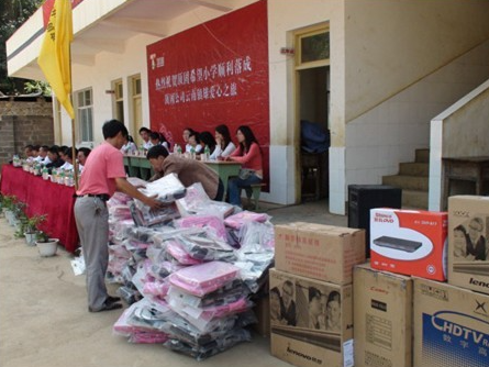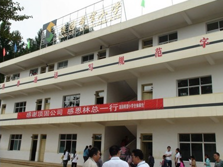2009年9月15 日,云南省镇雄中屯乡“顶固希望小学”彩旗飘扬,小学生们手拿小旗,列队欢迎一群从远方前来考察学校的异乡人,他们正是以总裁林新达为领队的顶固义工团。