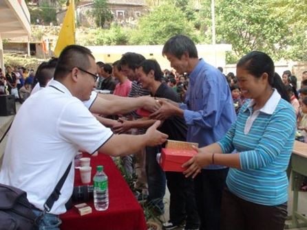 顶固义工团还特意带来了他们公司自建的艺术团,为师生表演文艺节目,孩子们像过节一样高兴,还吸引了乡亲们的围观。期间一对年迈的老爷爷、老奶奶为感激顶固对当地教育和孩子们的关怀,特意为顶固义工团送来了土产的鸡蛋和腊肉。“这样的场面只在电视上看过,没想到会发生在自己身上”,林新达对于受到乡亲们的如此礼遇,十分感动。