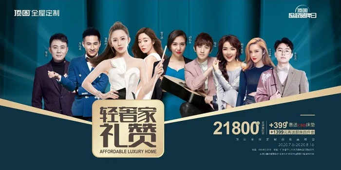 2020年7月6日至8月16日,顶固全屋定制启动“轻奢家·礼赞 顶固全屋定制超级品牌日”全国联动。多年以来,顶固全屋定制始终秉承着“以人为本”的家居哲学,致力于传递环保、舒适的生活方式。作为2020年顶固第二场全国联动的线下大促,8月16日,顶固将请来“九球天后”潘晓婷、安又琪、斯琴高丽、后弦、许佳慧、李袁杰、胡杨林、海鸣威、高安等多位明星,分别在中山、万州、西宁、上海、武汉、驻马店、绥中、西昌、象山9个城市顶固全屋定制门店展开明星落地活动,将绿色环保的居家生活带到千家万户。