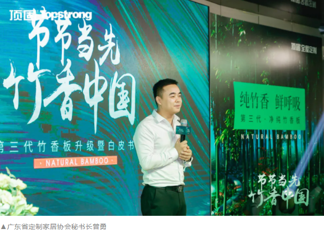 广东省定制家居协会秘书长曾勇先生在致辞中表示,顶固关注公益、关注生态发展,是一家很有高度与内涵的企业。有了像顶固这样的企业作为引导,必然会促进我国定制家居行业更快速、健康地发展。