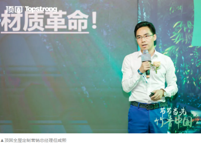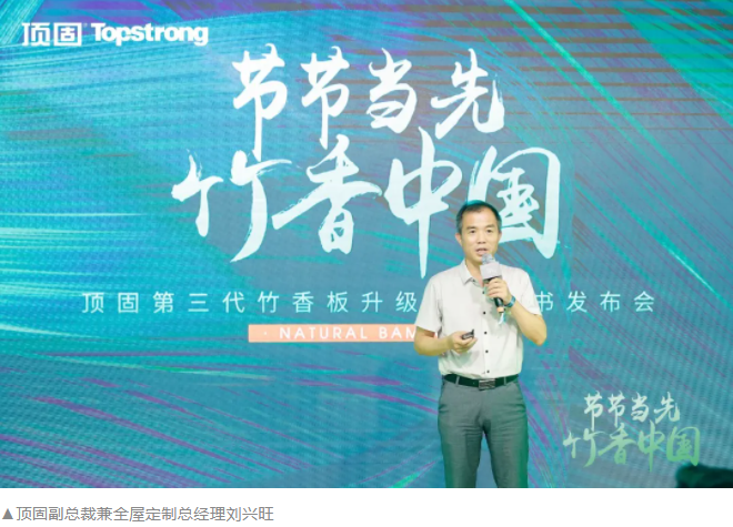 战略布局是企业发展路上的指路明灯。活动现场,顶固副总裁兼全屋定制总经理刘兴旺先生进行了分享。刘总提到,“顶固是一家高端定位的创新型企业,产品技术向国际顶尖家居品牌看齐。从轻奢家、到门墙柜全产业线再到竹香板,顶固一直以自主原创的家居精品引领高端定制。作为竹香板创导者,重视技术、重视品质、重视创新,这一直是顶固的DNA。”