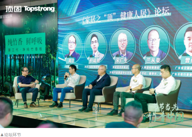 《家居之“顶”,健康人居》论坛环节,泛家居圈创始人周忠先生,宋广生宋老师,但咸熙但总 ,兰从荣兰总,曾勇曾秘书长展开了一场关于健康人居的深度对话,共论家居生态发展。在交流中,一众嘉宾对竹香板的环保性能、物理性能给予了高度肯定。以此作为契机,将会持续地促进我国环保家居产业多点开花、蓬勃发展。