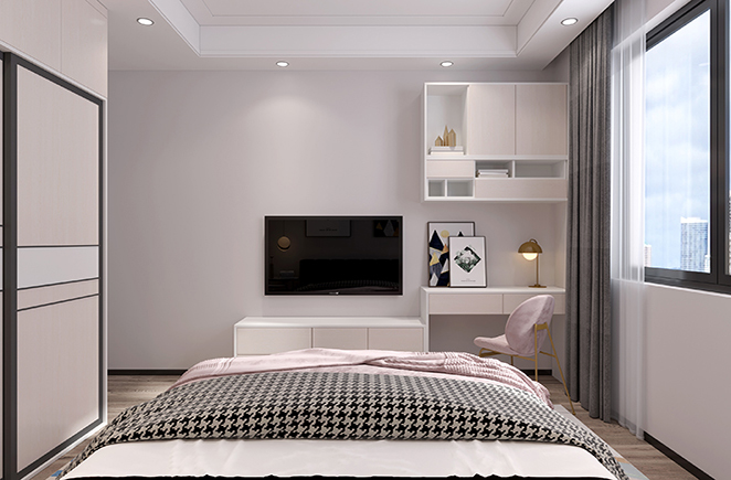 金丝白橡一路延伸至主卧,极简主义奠定了空间亲切又不失质感的基调。