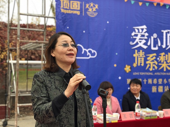 从前期的实地考察、奔波走访,到后期的资料整理、提报沟通,库尔勒顶固衣柜总经理黄华始终亲力亲为,竭尽全力地充当顶固与当地政府及相关教育部门的沟通纽带,最终促成顶固公司把哈拉苏农场作为顶固希望小学第十个站点。