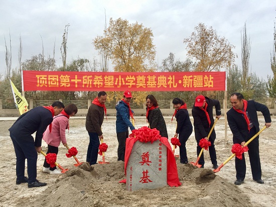 11月2日,迎着冷冽的寒风,顶固第十所希望小学新疆站奠基典礼在库尔勒市哈拉苏农场学校庄重举行。