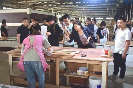 会议期间,经销商参观工厂生产车间,学习了解实木定制产品的生产工艺,产品特点。