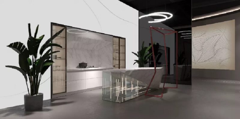 另外,顶固全屋定制的新品轻奢厨柜“未来之城”系列也将在整个展示空间中占据半壁江山。典型的中式风格与现代的西式风格以泾渭分明的方式呈现,如阴阳、黑白,给人以强烈对比的感官体验与视觉冲击。