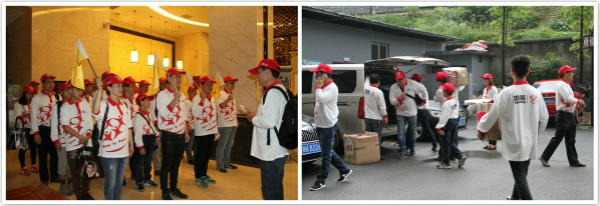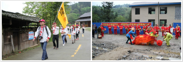 经过一夜春雨的洗礼,青山围绕的盛燕联校透着一股泥土的清新。身穿统一服装的顶固义工,搬着一箱箱赠品徒步走向校园。在路边,村民们自发组织了一支鼓乐欢迎队,打鼓、敲锣、打叉、舞狮……村民的热情、乐观、淳朴让每一位义工都感到无比的温暖。